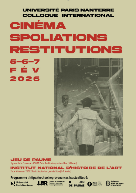 Ce colloque s’intéresse aux spoliations du cinéma et à la représentation des spoliations et des restitutions au cinéma, dans le contexte de 1933-1945 ainsi que dans les situations coloniales et post-coloniales. Fondamentalement pluridisciplinaire, ponctué de projections de films, il réunit des chercheurs en histoire, histoire du cinéma et histoire de l’art, anthropologie, sciences politiques, droit, chercheurs de provenance, travaillant sur des aires culturelles variées.
