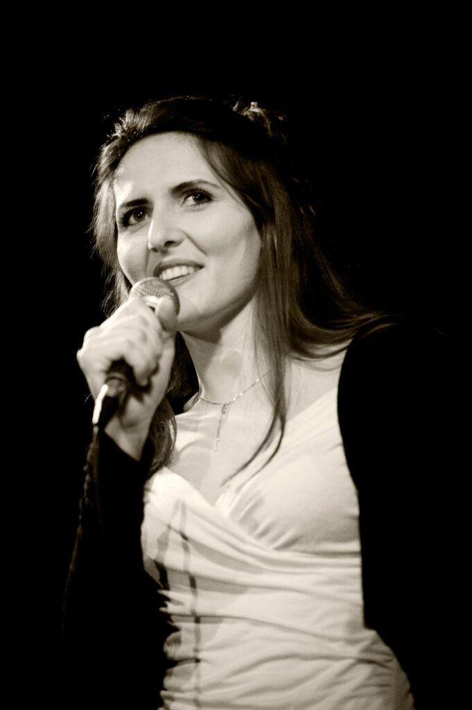 A ses débuts, elle interprétait ses chansons en français, et étudiait celles d’autres artistes en italien. Petit à petit, la réalité de sa pratique est devenue de plus en plus mélangée, et c’est tant mieux.