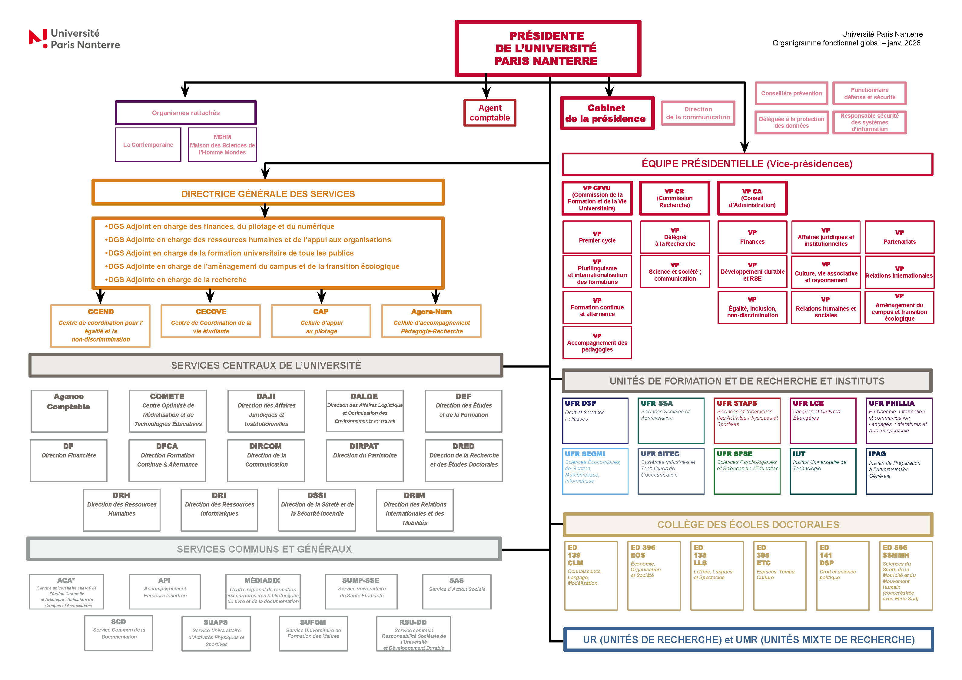 Organigramme fonctionnel global de l'Université Paris Nanterre